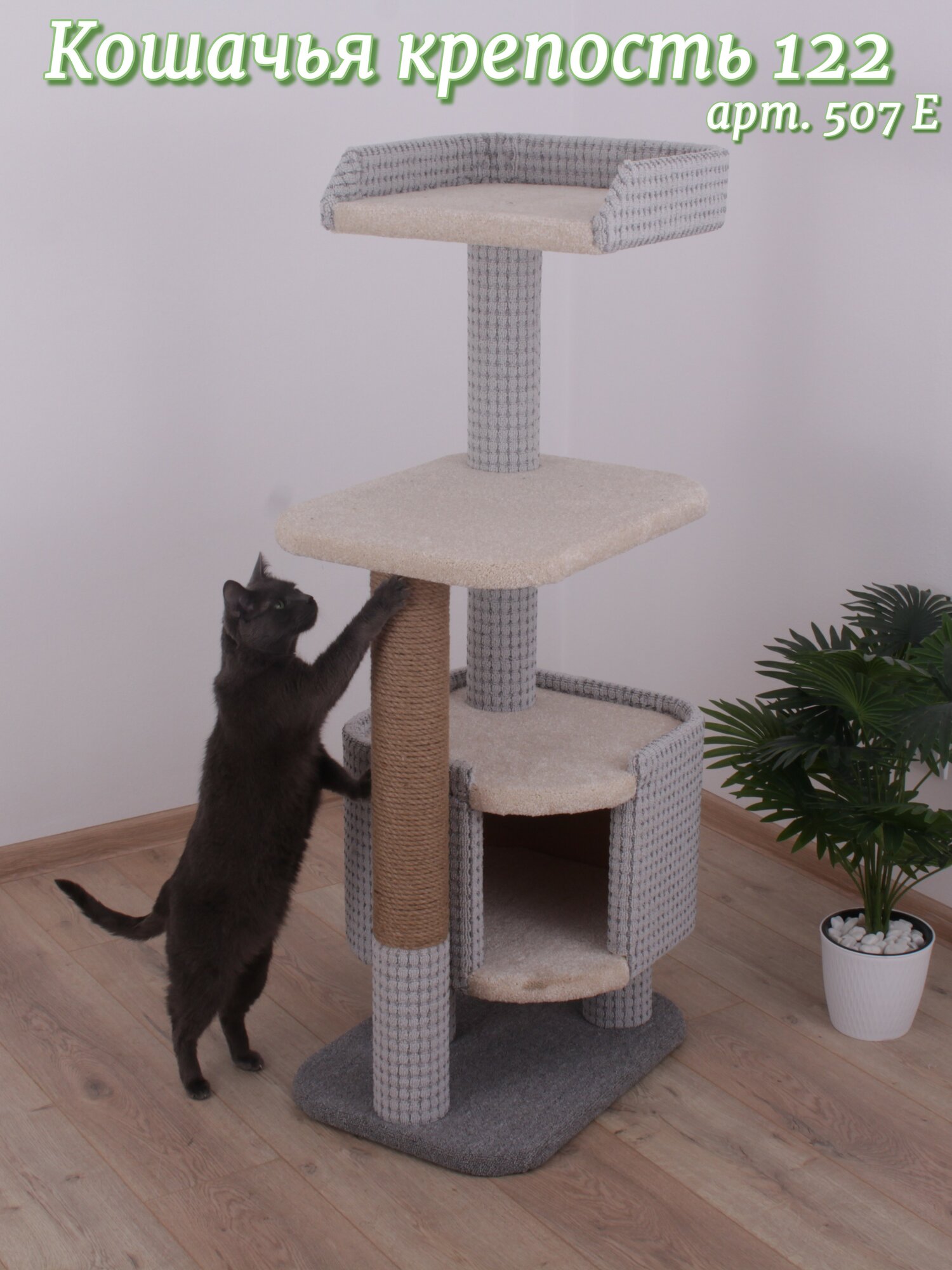 На комплексе "Етк Зоо" Кошачья крепость 122, спокойно может разместиться до 4 кошек. Это позволяет кошкам не только точить когти, но и отдыхать в свое удовольствие.