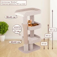 Когтеточка для кошек с лежанками «Етк Зоо» Кошачья крепость 101,101 х 56 х 40 см, бежевый с коричневым ковролин, джут: сравнение цен, характеристики, фото, актуальное наличие и цены.