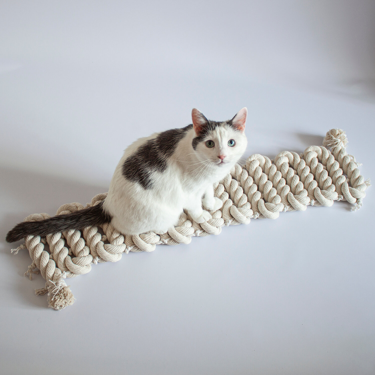 Когтеточка для кошки из хлопка . 120х18 см. Без креплений . канат 32 мм . Котомостик Змейка от Catbridges . Белый . Лежанка .