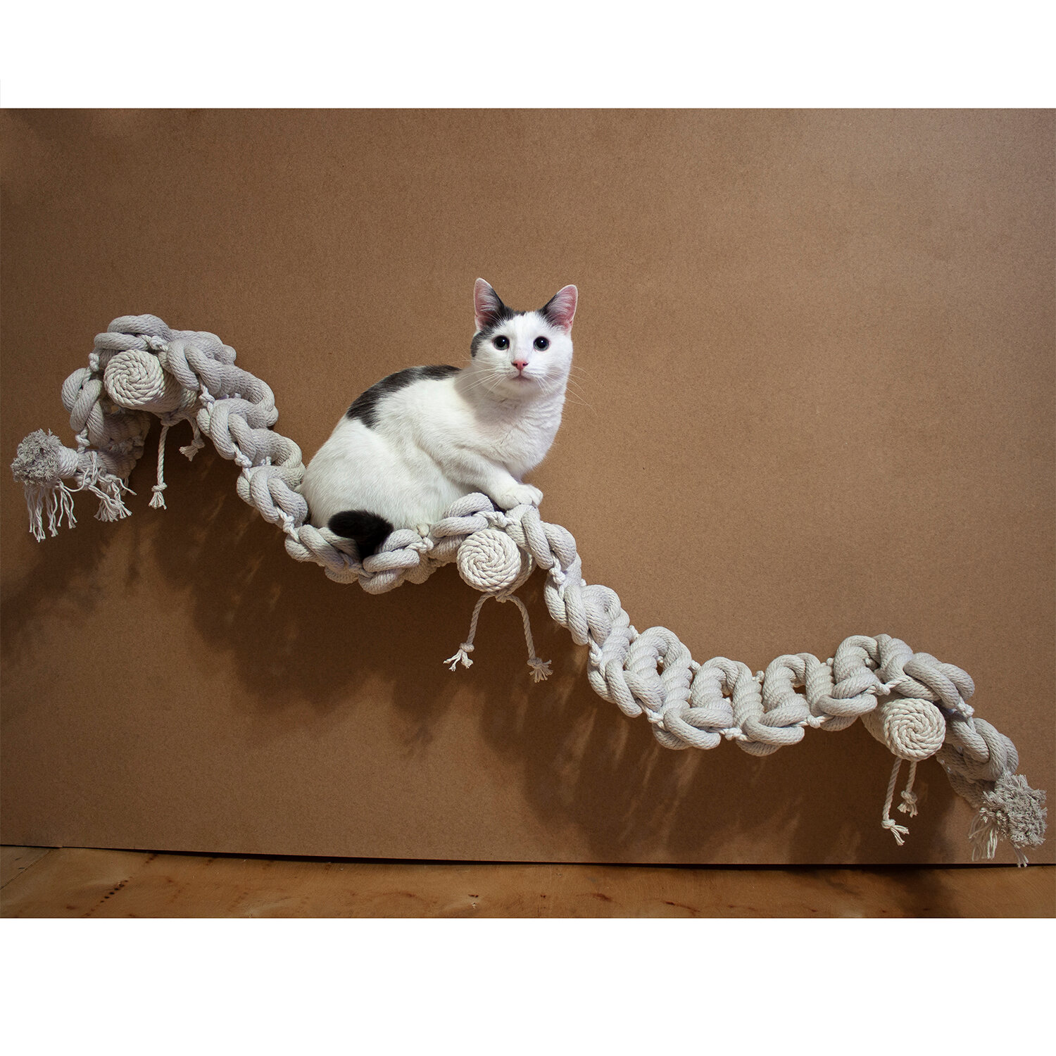 Купить Когтеточка для кошки из хлопка . 150х22 см, 3 брусочка . канат 32 мм, шпилька 8 мм . Котомостик Змейка от Catbridges . Белый . Лежанка . с доставкой по всей России.