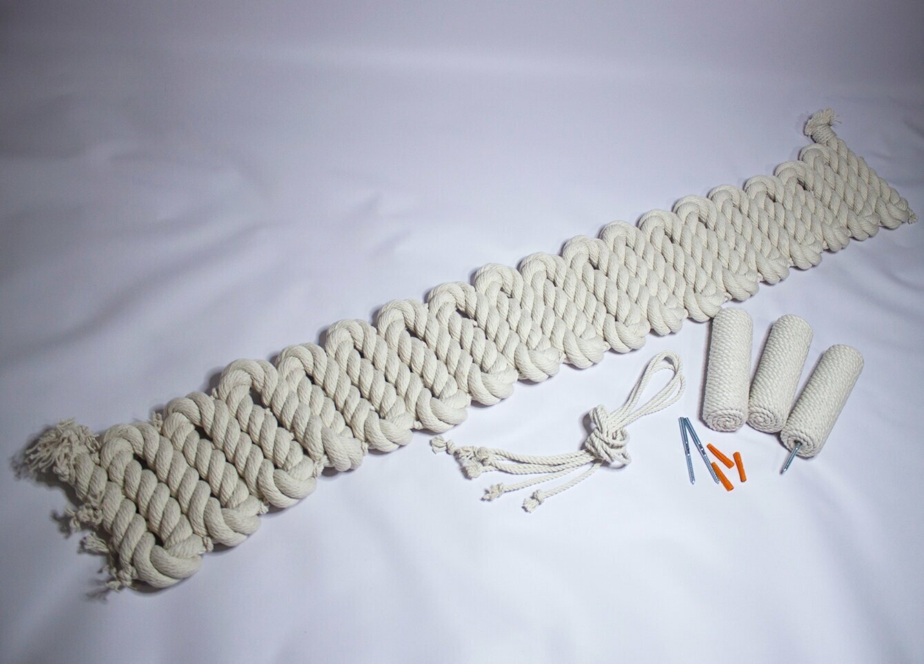 Когтеточка для кошки из хлопка . 190х22 см, 6 брусочков . канат 32 мм, шпилька 8 мм . Котомостик Змейка от Catbridges . Белый . Лежанка .