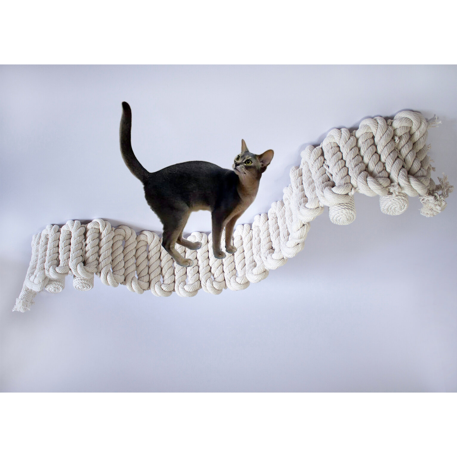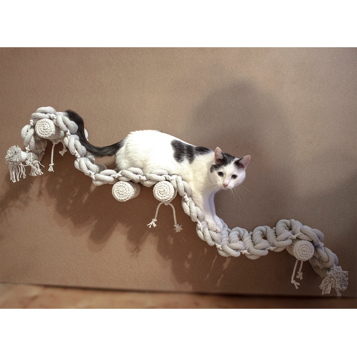 Когтеточка для кошки из хлопка . 200х18 см, 4 брусочка . канат 32 мм, шпилька 8 мм . Котомостик Змейка от Catbridges . Белый . Лежанка .