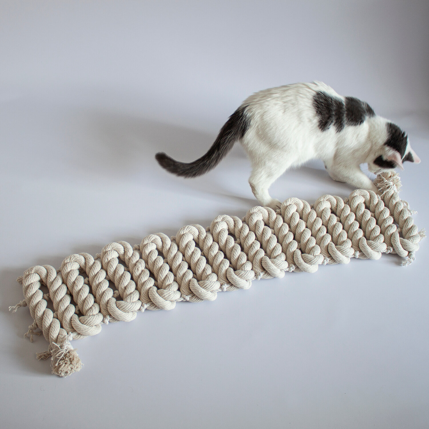 Когтеточка для кошки из хлопка . 220х18 см. Без креплений . канат 32 мм . Котомостик Змейка от Catbridges . Белый . Лежанка .
