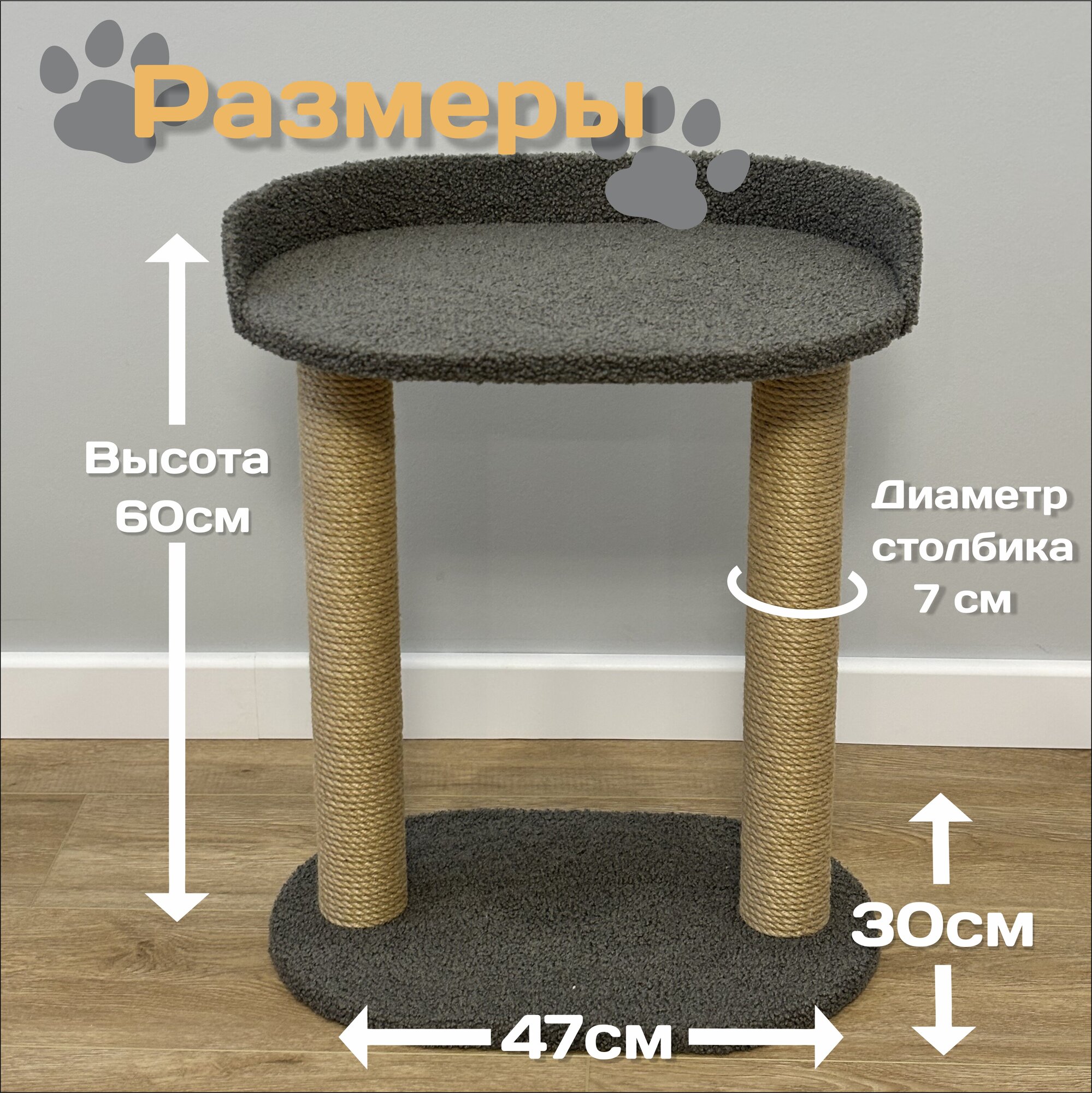 Когтеточка для кошки от бренда "Carapich12". Товары для животных, кошачьи зоотовары, а именно когтеточка станет незаменимой игрушкой для большого, среднего кота и маленьких домашних котиков. Столбик обмотан канатом джут . Общая высота 60см. Деревянный лежак обтянут мягrим мехом. Упаковывается в картонные коробки. Подходит для разных пород мелких, крупных питомцев. Бортик внутри меха выполнен из фанеры. Угловая когтедралка, установленная дома , защитит ваш диван от царапания котенка. Производство Россия.