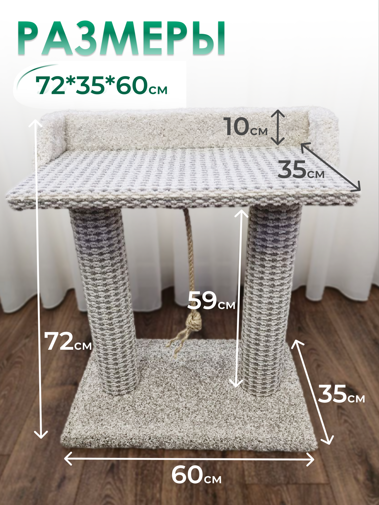 Уютная когтеточка с лежанкой для вашего пушистого друга! Эта стильная и устойчивая когтеточка станет любимым местом отдыха вашей кошки, обеспечивая ей комфорт и возможность поточить когти в одном месте.