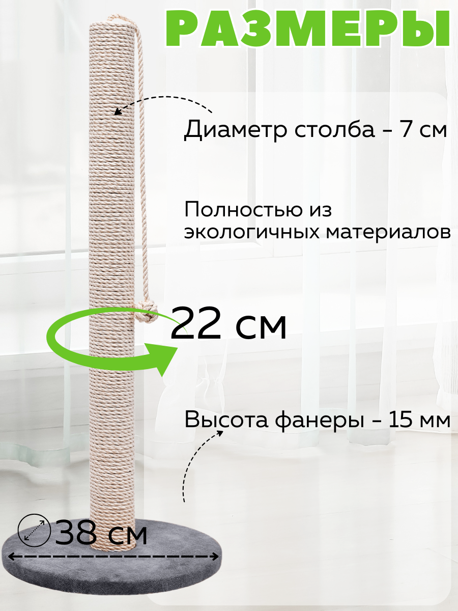 Этот напольный столбик создаст настоящий вертикальный кошачий комплекс для вашего питомца. Подходит для больших и крупных котов, также идеально подходит для мей кунов. Изготовлен из джутового каната с натуральным хлопковым волокном, этот товар обеспечит надежную защиту ваших мебели и ковров от острых коготков. Высота позволяет котенкам также наслаждаться игрой и тренировкой своих навыков. Ваш кот сможет по достоинству оценить не только функциональность, но и привлекательность этой игрушки когтедралка, если добавить кошачью мяту. Столбик значительно увеличит пространство для игр, точить когти для кошек, что будет особенно полезно для активных пород. Материалы полностью безопасны и экологичны, конструкция продумана до мелочей, чтобы обеспечить устойчивость и долговечность товара. Ваш мейн кун получит занятие на долгие часы, лучшая игрушка для кота, столб для кота, укрепляя свои когти о прочный джутовый канат, подходит для двух котов. Запасные сменные столбы в наличии. Легко впишется в интерьер вашего дома благодаря своему лаконичному дизайну и станет любимым местом вашего пушистого друга. Высокая поверхность позволяет реализовать все потребности животного в движении и расслаблении. Не сомневайтесь, ваш кот оценит внимание производителей к деталям: от прочного основания до полноценной высоты конструкции. Мягкие края исключают риск травмирования лапок, а натуральные материалы джут делают когтеточку безвредной как для взрослых кошек, так и для маленьких котят cat. Подходящее решение как для любопытных животных, которые любят исследовать пространство вокруг себя, так и для спокойных представителей рода кошачьих — всех объединяет тяга к комфорту и удовольствие от хорошо продуманной игрушки. Игрушка для котенка. Вас порадует неприхотливость в уходе аксессуары для кошек: достаточно лишь слегка пройтись влажной тряпкой по поверхности после активных игр вашего любимца. Не упускайте возможность сделать каждый день вашего питомца насыщенным новым опытом с зоотоварами для кошек!