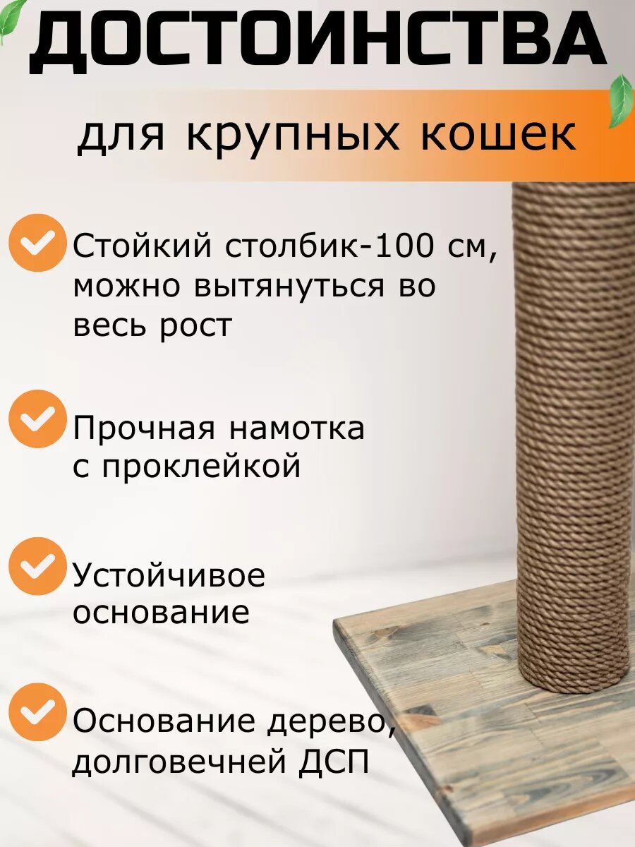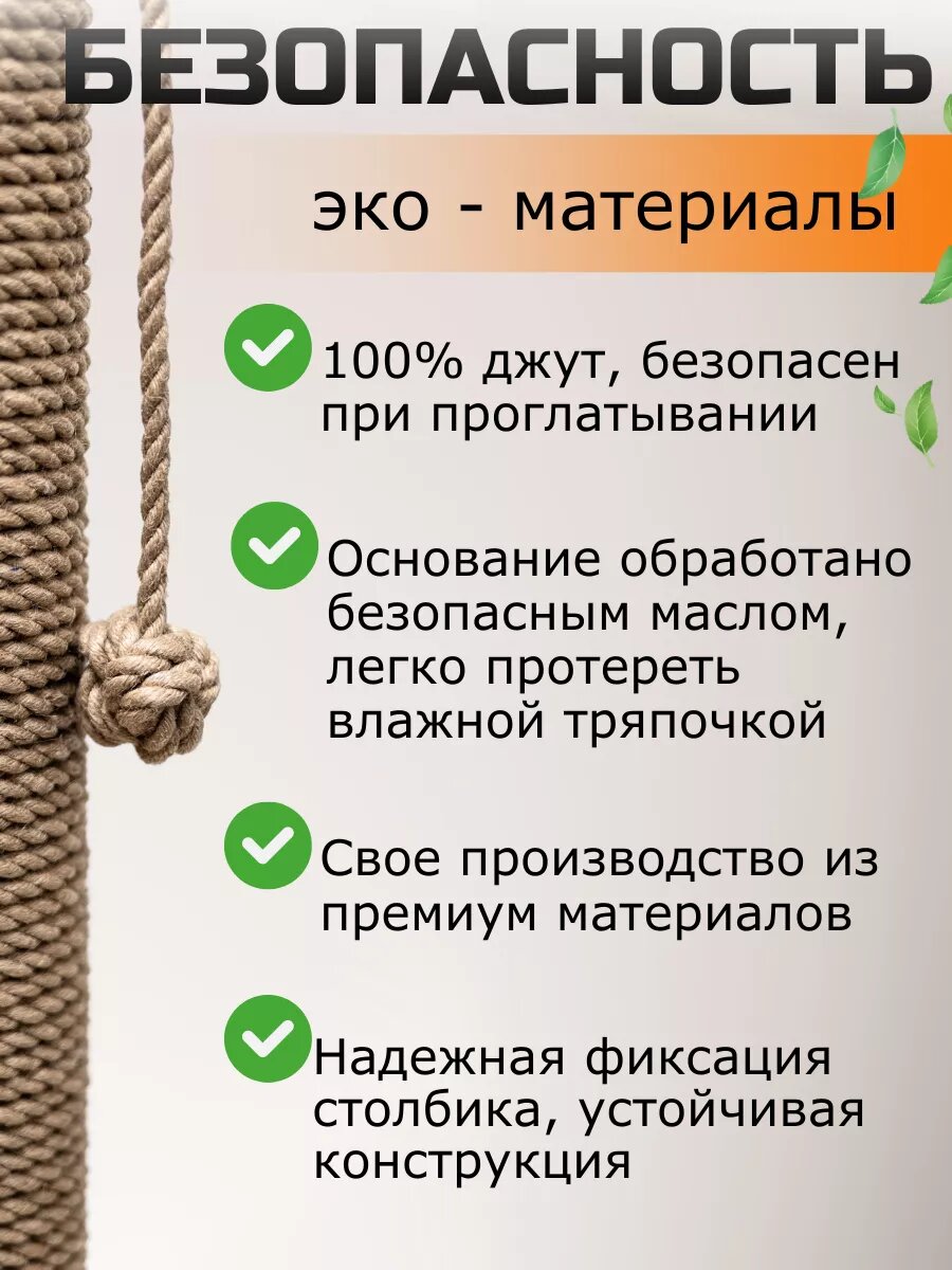 Материалы полностью безопасны и экологичны, а конструкция продумана до мелочей, чтобы обеспечить устойчивость и долговечность товара. Ваш мейн кун получит достойное занятие на долгие часы, укрепляя свои когти о прочный джутовый канат.