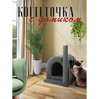 Купить Когтеточка «Дом для кошки» ДобрМир, для котов и кошек, 1 ярус, напольная, черная с доставкой по всей России.