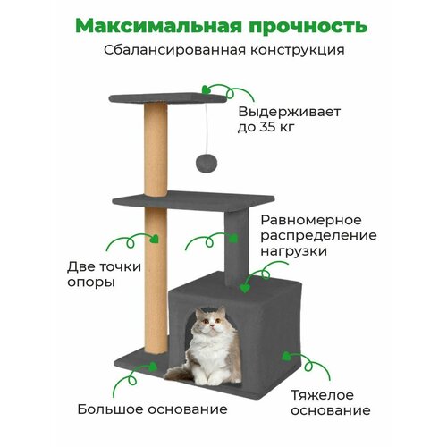 Когтеточка для кошек с домиком преимущества: * Высокая когтеточка, Кошке комфортно точить когти в полный рост и вытянутся * Игровой Комплекс вмешает сразу несколько крупных кошек * Целых 2 точки опоры! Максимальная прочность и устойчивость.