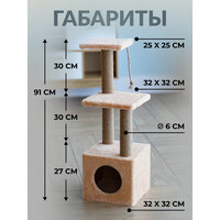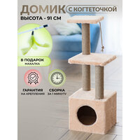 Купить Когтеточка домик комплекс для кошек многоуровневый 90 см. с полочками и игрушкой с доставкой по всей России.