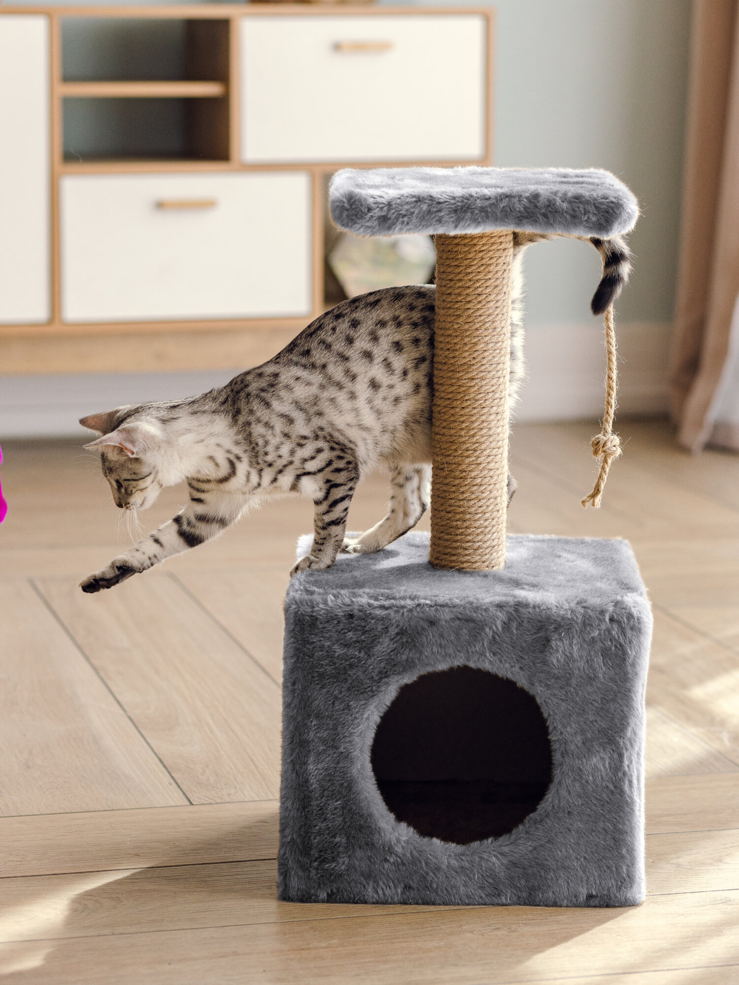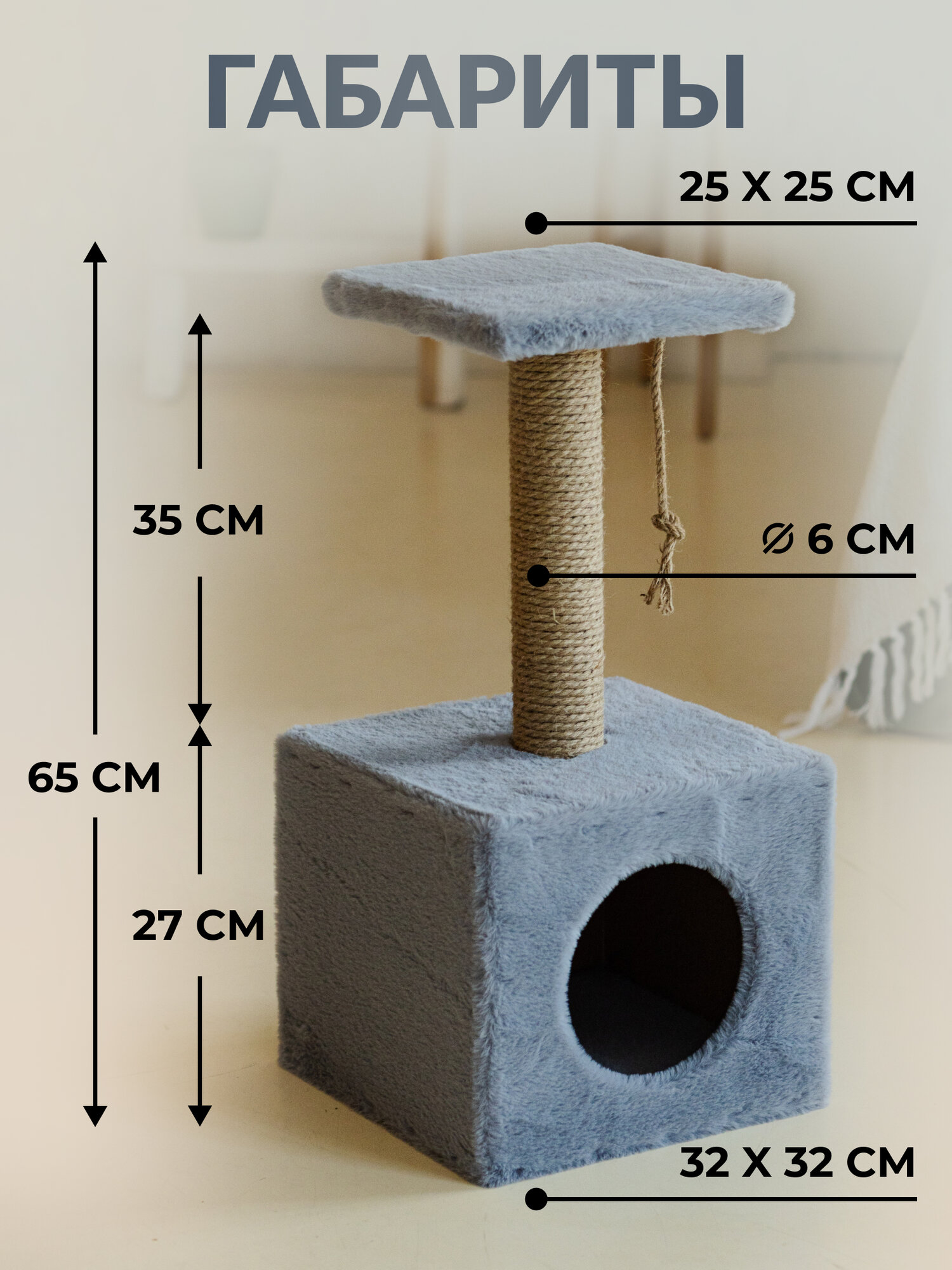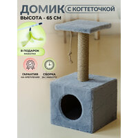 Когтеточка домик комплекс для кошек с когтеточкой, полочкой и игрушкой