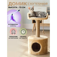 Комплекс для кошки дает все для активностей и комфортного отдыха вашей кошки: домик для кошки, когтеточка, лежанка для кошки. Мы используем мех премиального качества - он очень мягкий и нежный. Джутовый канат на столбиках проклеивается по всей высоте когтеточки. Домик для кошек занимает минимум места - 32*32 см. Общая высота конструкции - 73 см. Наше главное преимущество - проверенная прочность. В опорных столбиках-когтеточках мы используем только фанерные втулки (никакой пластмассы!). Производство максимально автоматизировано, что сводит процент брака у нулю. Комплекс собирается за считанные минуты без инструментов. В комплекте имеется подробная инструкция, а также есть видео. Дается гарантия от производителя на крепления - 3 месяца (при соблюдении всех правил по эксплуатации). Домик для кошки разбирается и упаковывается в прочный гофро-короб, что обеспечивает его сохранность и минимизирует риски порчи при транспортировке. Внимание! Собирать строго по инструкции. Для безопасной эксплуатации домик следует закрепить к стене.