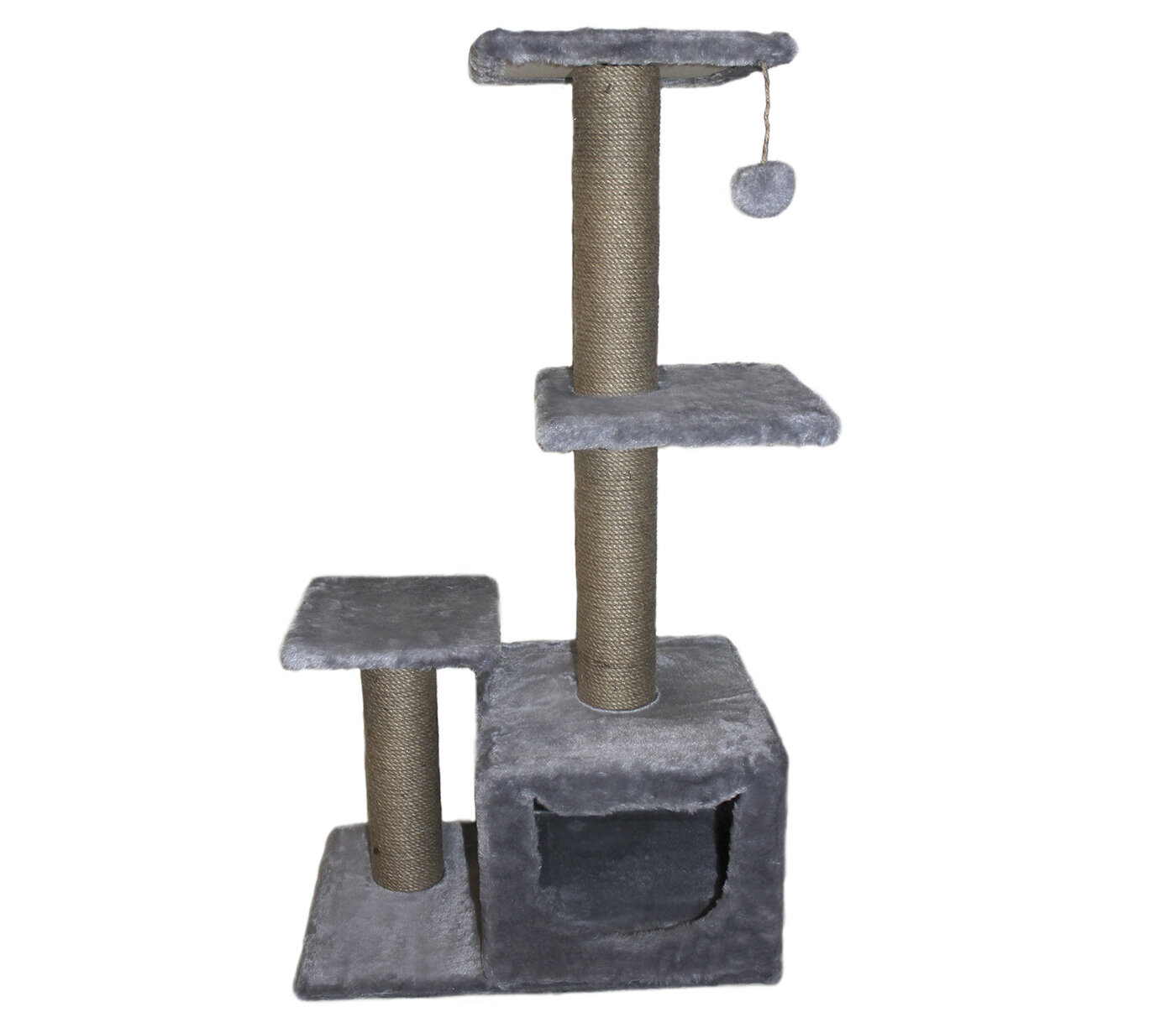 Купить Когтеточка домик «PetSmile» 3-х уровневый с дополнительным столбом. Серый.110х58х35. с доставкой по всей России.