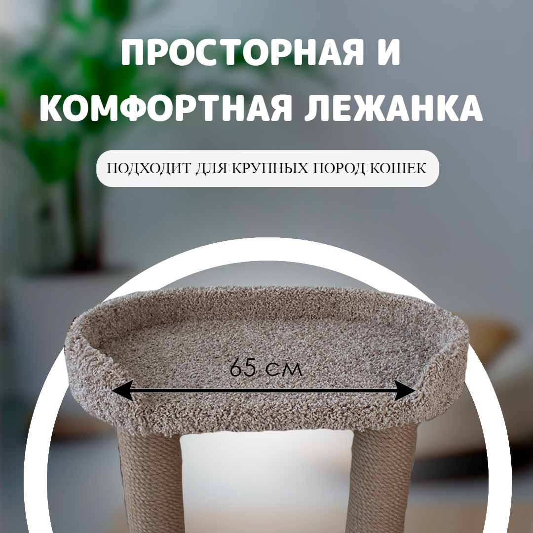Оптимальная высота когтеточки 85см и толстый столбик диаметром 10см. позволит вашей кошке комфортно вытягиваться и точить когти. Комплекс многоувровневый, устойчивый и функциональный, включает в себя все необходимое для комфортного использования: Уютная, вместительная лежанка.