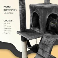 размер платформы - 39,5 х 39.5 х 1.2 см, размер нижней лежанки - 39.5 х 39.5 х1.2 см, размер средней лежанки - 31 х 31 х 9 см, размер верхней лежанки - 39.5 х 24.5 х 1.2 см, размер столбика с игрушками - 50 х 5 см, высота собранного домика - 125 см