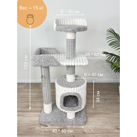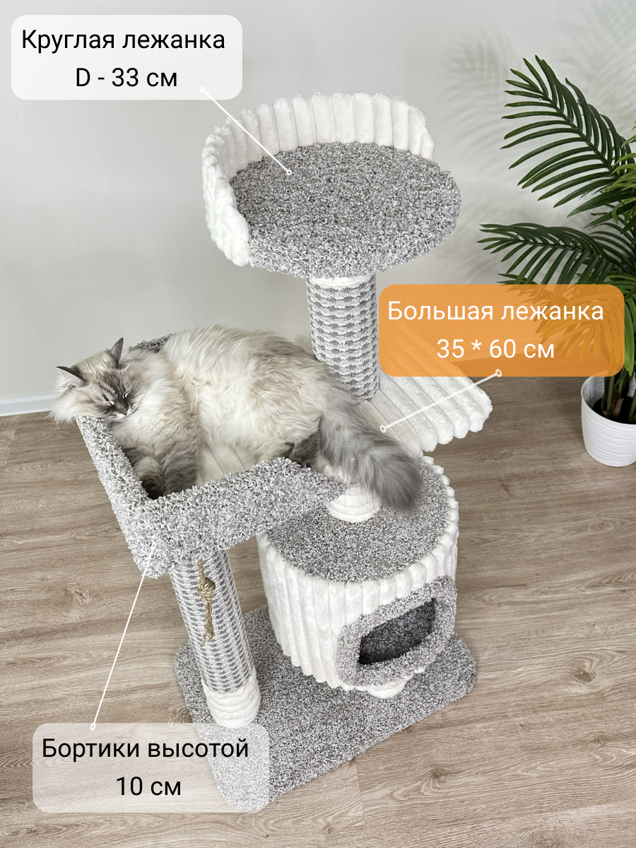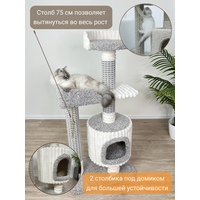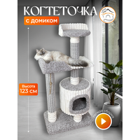 Когтеточка "Котосчастье" с домиком и лежаком из ковролина, серый, молочный