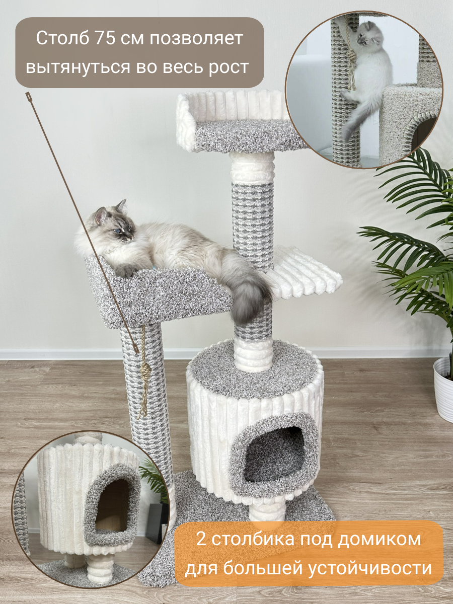 Когтеточка " Котосчастье" с домиком и лежанками из меха и ковролина , высота 105 см