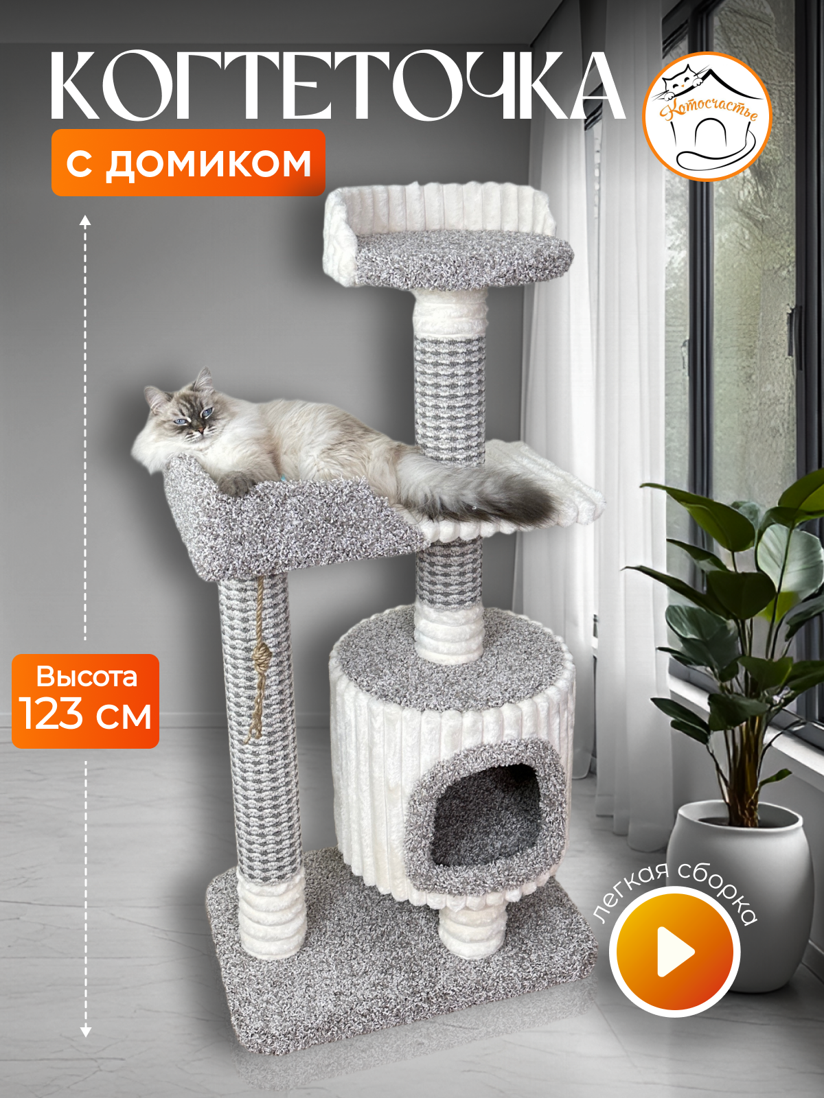 Когтеточка «Котосчастье» с домиком и лежаком из ковролина, серый, молочный: сравнение цен, характеристики, фото, актуальное наличие и цены.