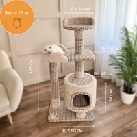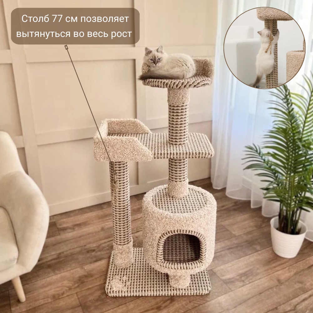 Когтеточка «Котосчастье» с домиком и лежанками из ковролина, высота 123 см: сравнение цен, характеристики, фото, актуальное наличие и цены.