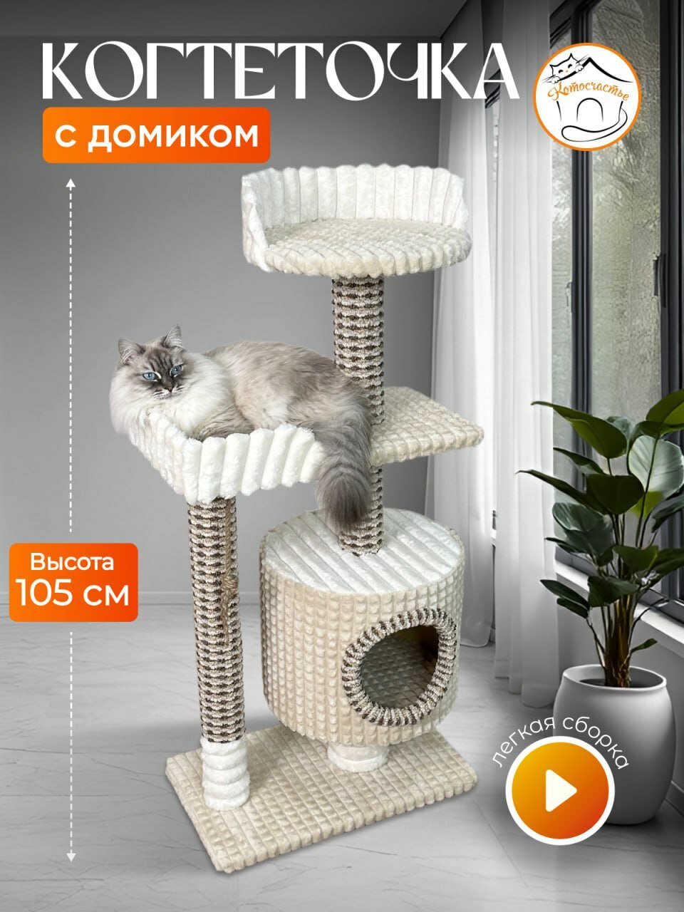 Когтеточка » Котосчастье» с домиком и лежанками из меха и ковролина , высота 105 см: сравнение цен, характеристики, фото, актуальное наличие и цены.