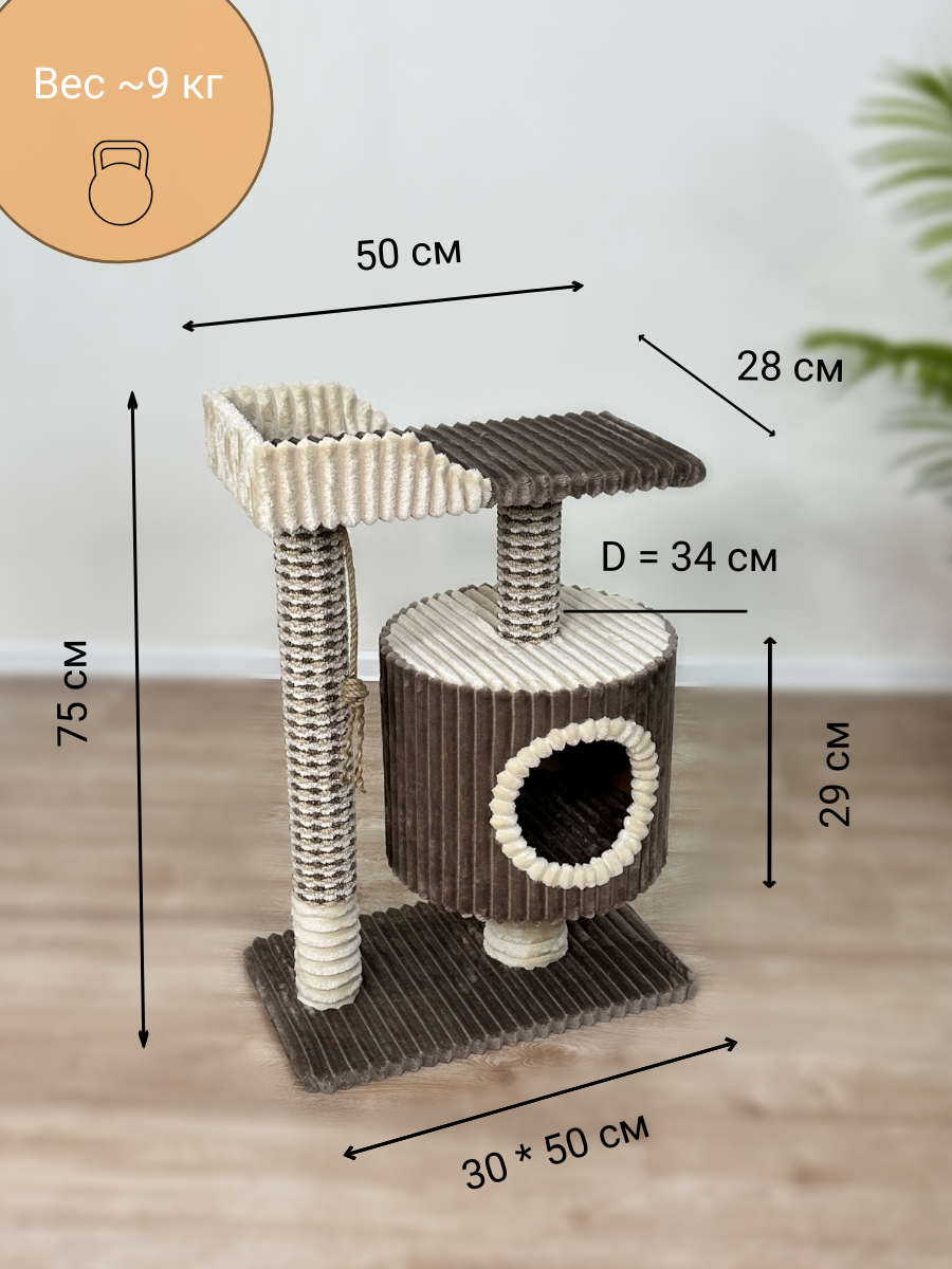 Когтеточка «Котосчастье»с домиком и лежанкой из искусственного меха, коричневая: сравнение цен, характеристики, фото, актуальное наличие и цены.