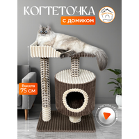 Купить Когтеточка «Котосчастье»с домиком и лежанкой из искусственного меха, коричневая с доставкой по всей России.