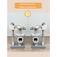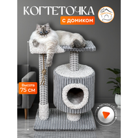 Купить Когтеточка «Котосчастье»с домиком и лежанкой из ковролина, серая с белым с доставкой по всей России.