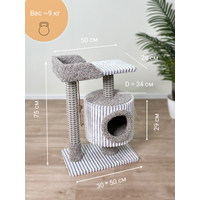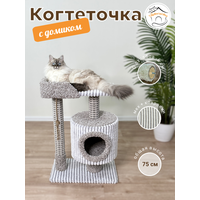 Купить Когтеточка «Котосчастье»с домиком и лежанкой из ковролина, светло-серая с доставкой по всей России.