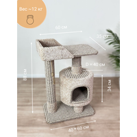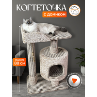 Купить Когтеточка » Котосчастье» с домиком и лежанкой из ковролина, высота 88 см, цвет — бежевый с доставкой по всей России.