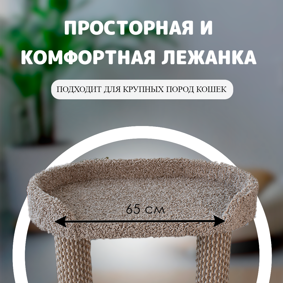 Оптимальная высота когтеточки 85см и толстый столбик диаметром 10см. позволит вашей кошке комфортно вытягиваться и точить когти. Комплекс многоувровневый, устойчивый и функциональный, включает в себя все необходимое для комфортного использования: Уютная, вместительная лежанка.