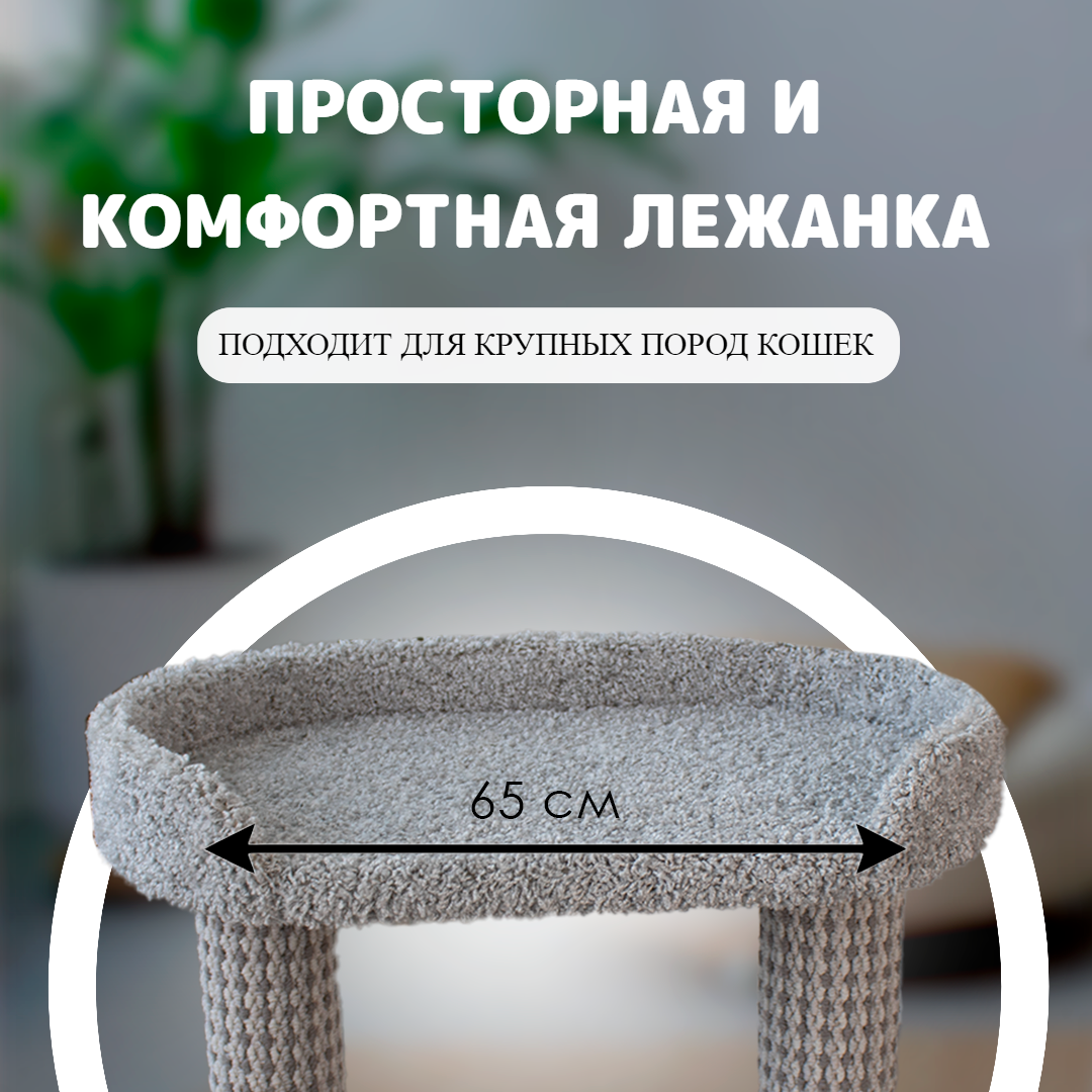 Оптимальная высота когтеточки 85см и толстый столбик диаметром 10см. позволит вашей кошке комфортно вытягиваться и точить когти. Комплекс многоувровневый, устойчивый и функциональный, включает в себя все необходимое для комфортного использования: Уютная, вместительная лежанка.