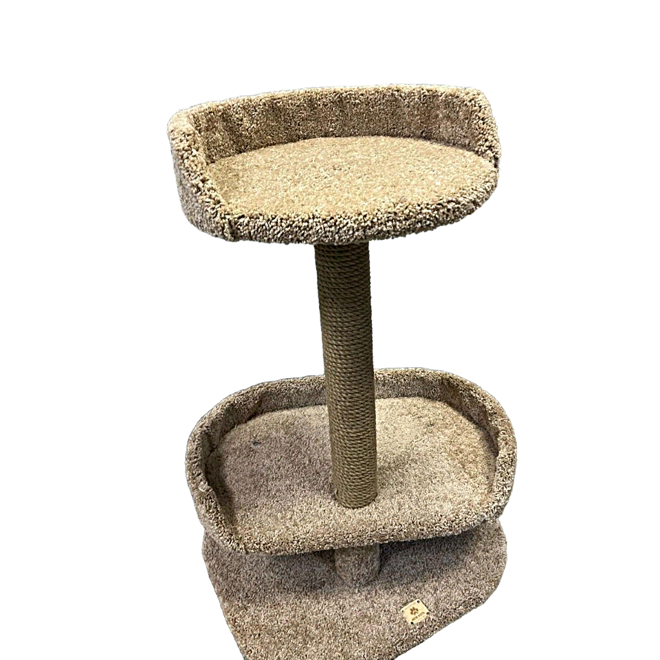 Небольшая когтеточка с двумя лежанками. Игровой комплекс когтеточка сделан из высококачественных, экологически чистых материалов. Эргономичное расположение лежанок непременно порадует вашего любимчика. Подойдет для двух питомцев, невысокое расположение нижней лежанки (на высоте 23 см) понравится небольшой собачке. Комплекс очень крепкий и устойчивый Столбики изготовлены из цельного бревна диаметром 8см Прочный джутовый канат 8мм, проклеен по всей длине столбика Высококачественный ковролин, а не мех Основание 60/50 см Нижняя лежанка 60/35 см, верхняя лежанка 40 см Столбик-когтеточка 60 см Общая высота 95 см Очень простая сборка!