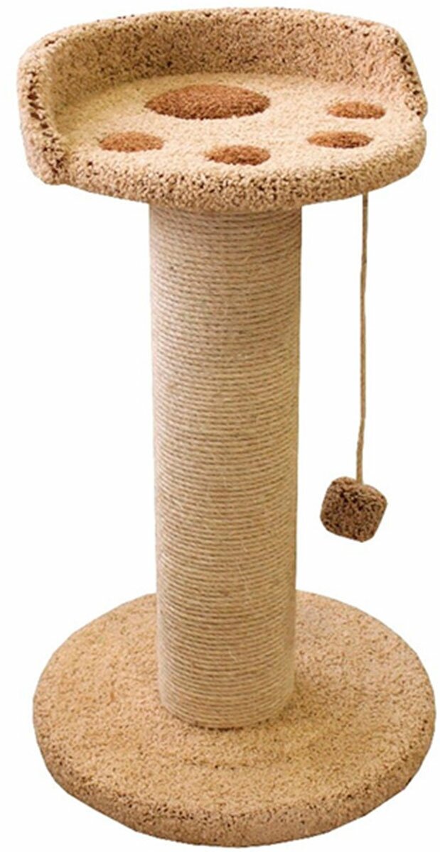 Когтеточка Ряпушка – идеальное решение для активных кошек, которые очень любят почесать свои коготки! Наверху уютная лежанка, на которой так чудесно отдохнуть или просто понаблюдать за окужающими. Толстый столбик-когтеточка удовлетворит естественную потребность Вашего питомца точить когти и станет любимым местом для игр. Когтеточка – необходимый аксессуар для Вашего любимца. Она сбережет в целости и сохранности Ваши обои, мебель и предметы интерьера. Комплекс изготовлен из ДСП, обивка – ковролин. Когтеточка изготовлена из сизаля. Размеры: Диаметр основания: 52 см. Высота: 90 см. Цвет: бежевый с лапой греча.