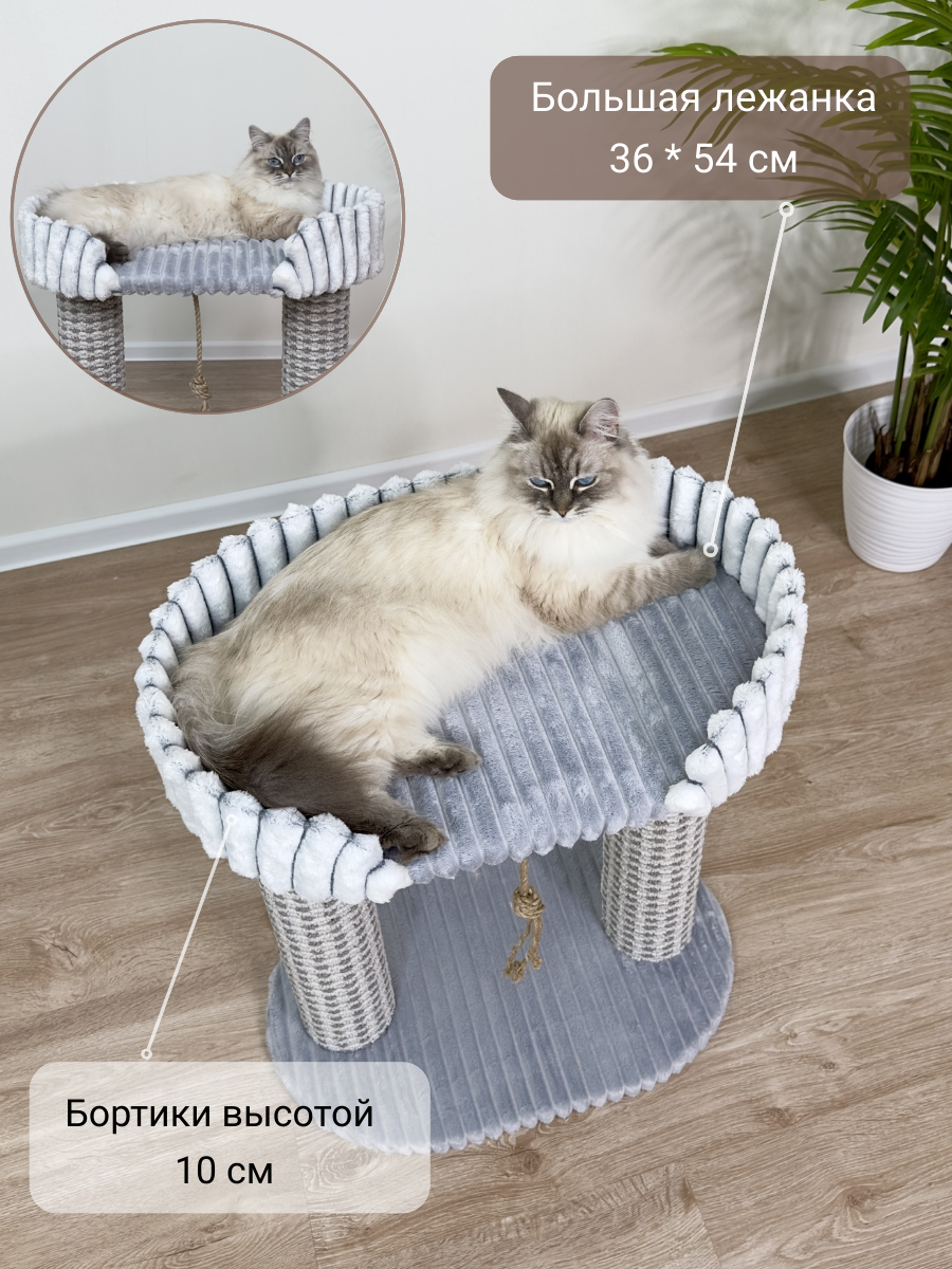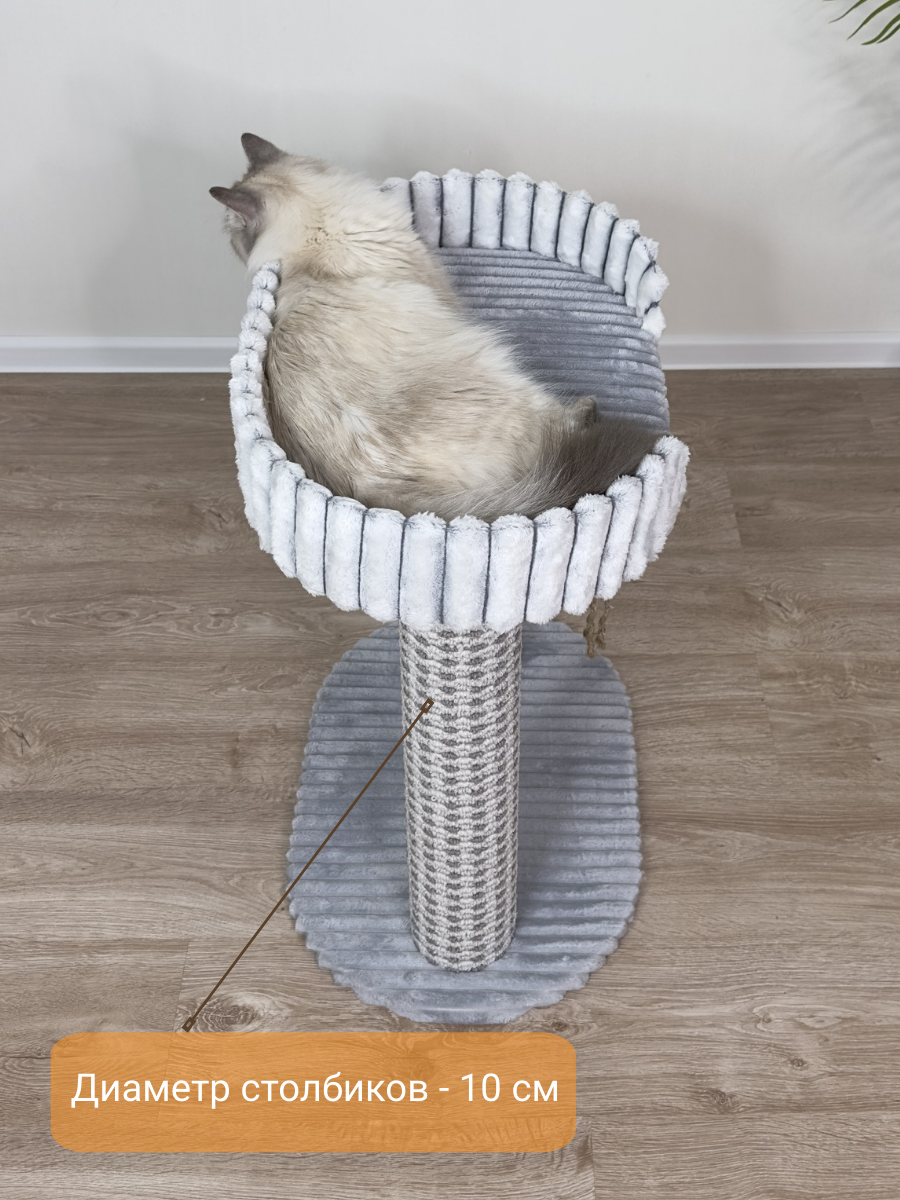 Добро пожаловать в уютный и интерьерный мир КотоСчастье для ваших любимых кошечек! Представляем вам нашу новую когтеточку для кошки с лежанкой. Этот товар для домашних животных многофункциональный и создан специально для комфорта и заботы о вашем питомце. Игровой комплекс, позволит вашей кошке отдохнуть и почувствовать себя защищенной. Два столбика делают этот комплекс идеальным местом игр для котиков, при этом оставаясь устойчивым и прочным. Наша когтеточка столбик с лежанкой отлично подходит для приучения котят к использованию когтеточки. Покрытие ковролин обеспечивают комфорт для вашего котенка. Комплекс легко впишется в ваш домашний интерьер. Помогите своей кошке контролировать рост когтей и сохранять их в хорошем состоянии. Когтеточка с лежанкой является отличным способом приучения котика использовать специальное место для точения когтей, что поможет предотвратить повреждение мебели и стен. Столбики 10 см в диаметре, из толстостенного суперпрочного картона и отделаны ковролином. Они позволят вашей кошке точить когти безопасно и комфортно. Кроме того, лежанка предлагает дополнительное пространство для отдыха и уюта. Нет больше повреждений вашей мебели или царапин на полу! Наша когтеточка - это качественный и долговечный товар. Верёвочка из джута - дополнительное развлечение для питомца! Размеры и форма когтедралки соответствуют потребностям кошки и помогут ей занять свой уголок в доме, не занимая много места. Наши зоотовары собственного производства, всегда отвечают самым высоким стандартам качества и безопасности. Мы заботимся о комфорте и благополучии ваших домашних любимцев и предлагаем только лучшее. Наша когтеточка для кошек - это идеальное место для вашего питомца. Комплекс из ковролина и искусственного меха, что позволяет кошке точить когти не только об столбик! Подходит для средних пород.