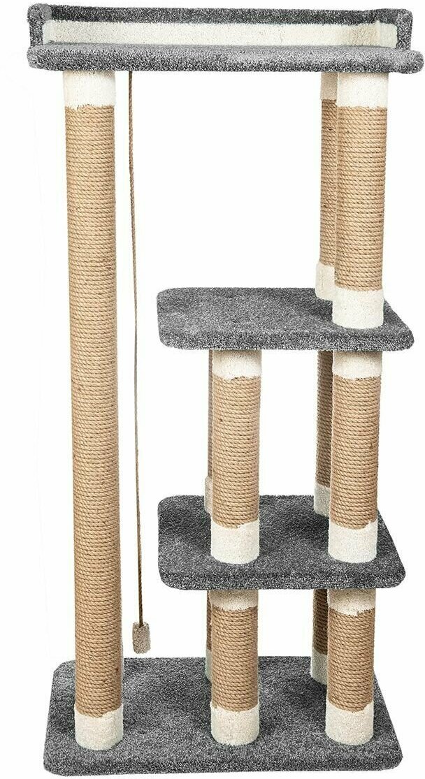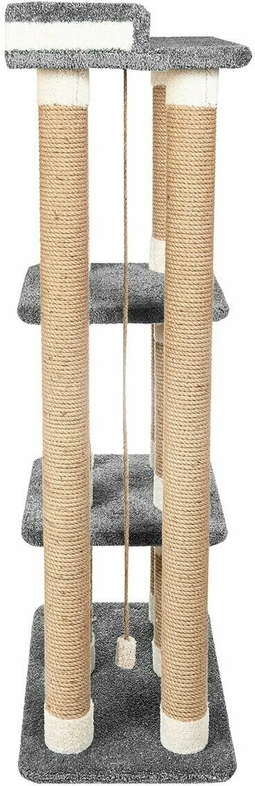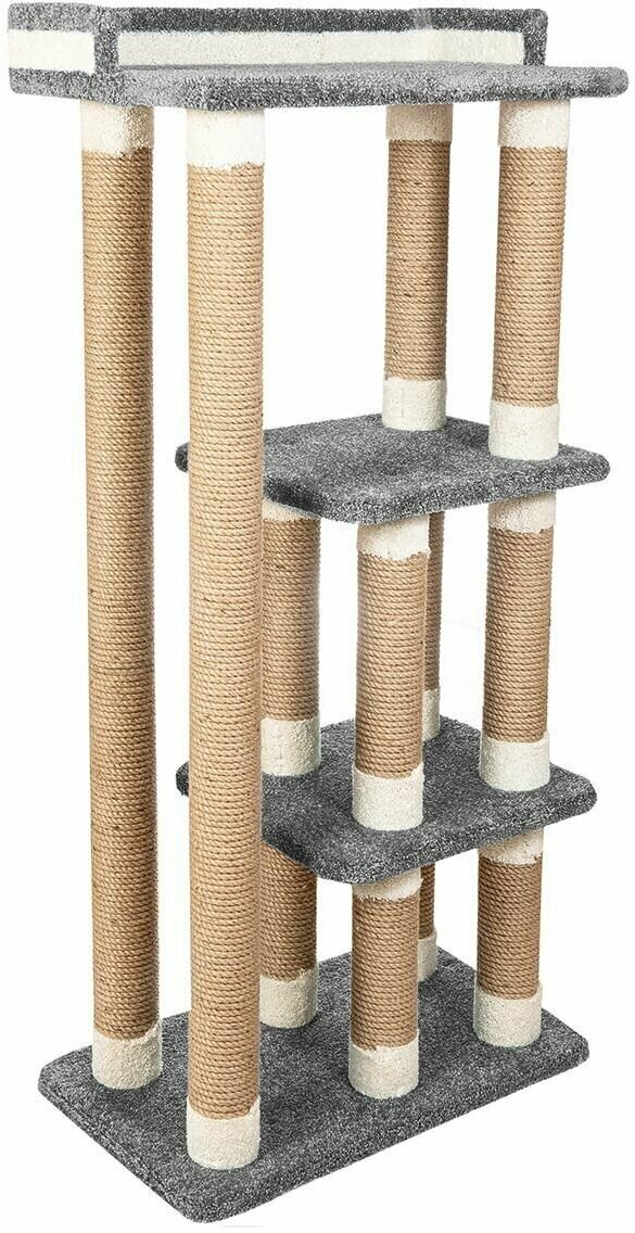 Высокий столбик диаметром 10 см с плотной обмоткой из джута, с лежанками из мягкого долговечного ковролина отлично подойдет как для взрослого крупного кота, так и для маленьких игривых котят. Изделие на подставке устойчивое и безопасное.