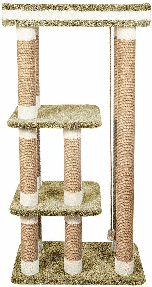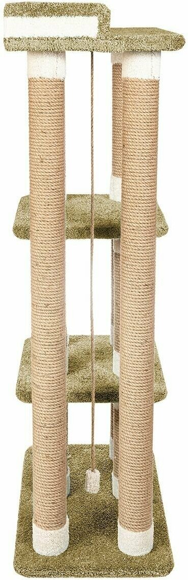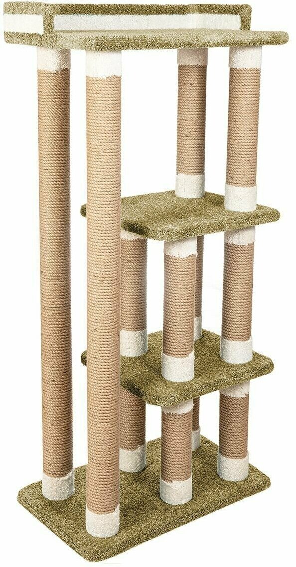 Высокий столбик диаметром 10 см с плотной обмоткой из джута, с лежанками из мягкого долговечного ковролина отлично подойдет как для взрослого крупного кота, так и для маленьких игривых котят. Изделие на подставке устойчивое и безопасное.