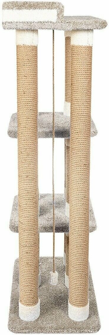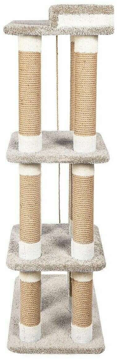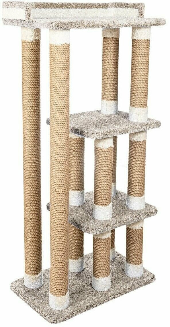 Высокий столбик диаметром 10 см с плотной обмоткой из джута, с лежанками из мягкого долговечного ковролина отлично подойдет как для взрослого крупного кота, так и для маленьких игривых котят. Изделие на подставке устойчивое и безопасное.