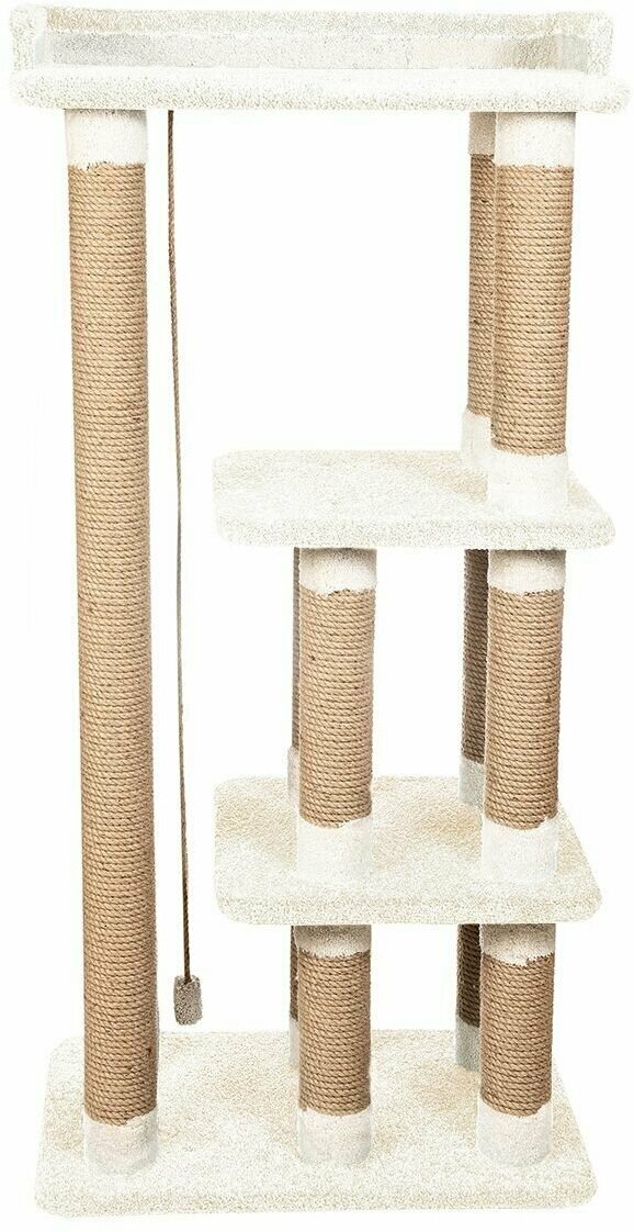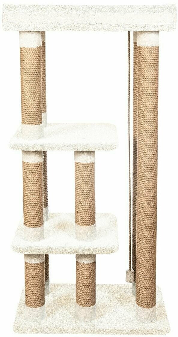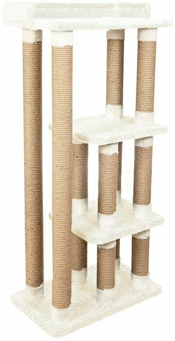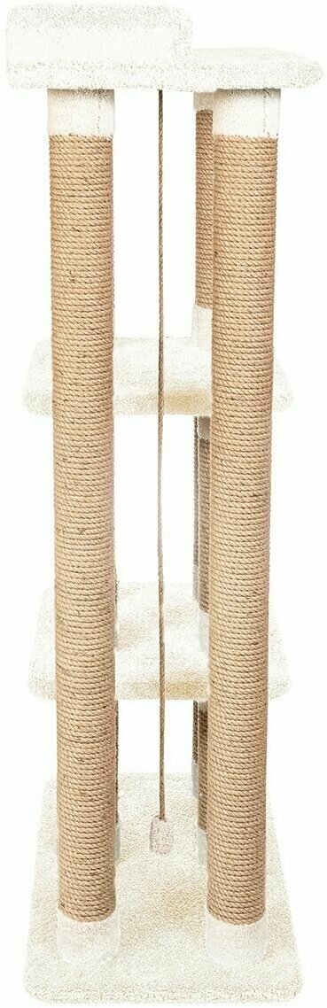Высокий столбик диаметром 10 см с плотной обмоткой из джута, с лежанками из мягкого долговечного ковролина отлично подойдет как для взрослого крупного кота, так и для маленьких игривых котят. Изделие на подставке устойчивое и безопасное.