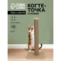 Купить Когтеточка-столбик толстый, искусственный мех, джут, 40 х 40 х 80 см, бежевый с доставкой по всей России.