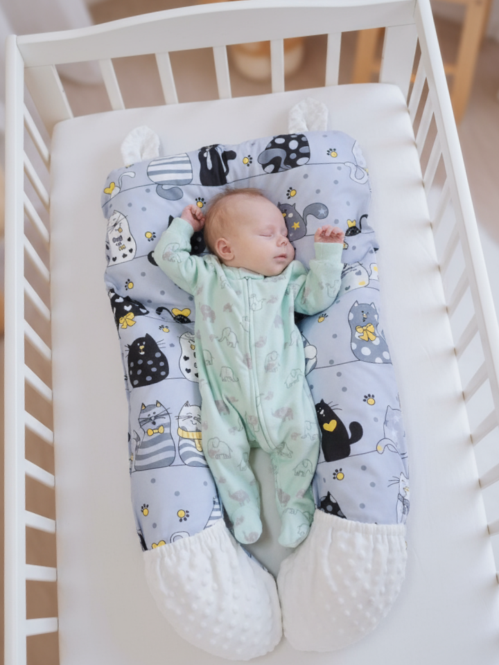 Кокон для новорожденного малыша гнездышко подушка позиционер с чехлом Owl&EarlyBird Коты серые 0+: сравнение цен, характеристики, фото, актуальное наличие и цены.