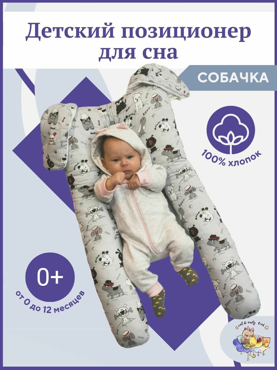 Купить Кокон для новорожденного малыша гнездышко подушка с чехлом Owl&EarlyBird Собачки цвет серый 0+ с доставкой по всей России.