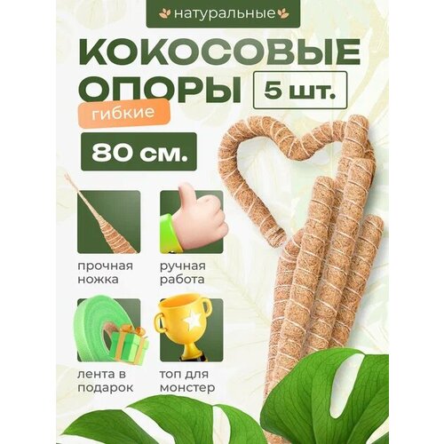 Купить Кокосовая опора для растений гибкая, Декоративная опора для вьющихся комнатных растений 80 см, 5 шт с доставкой по всей России. Кокосовая опора для растений гибкая, Декоративная опора для вьющихся комнатных растений 80 см, 5 шт: сравнение цен, характеристики, фото, актуальное наличие и цены.