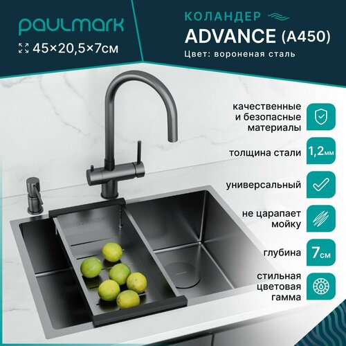 Купить Коландер/корзина Paulmark Advance A450-GM для кухонной мойки, вороненая сталь с доставкой по всей России.