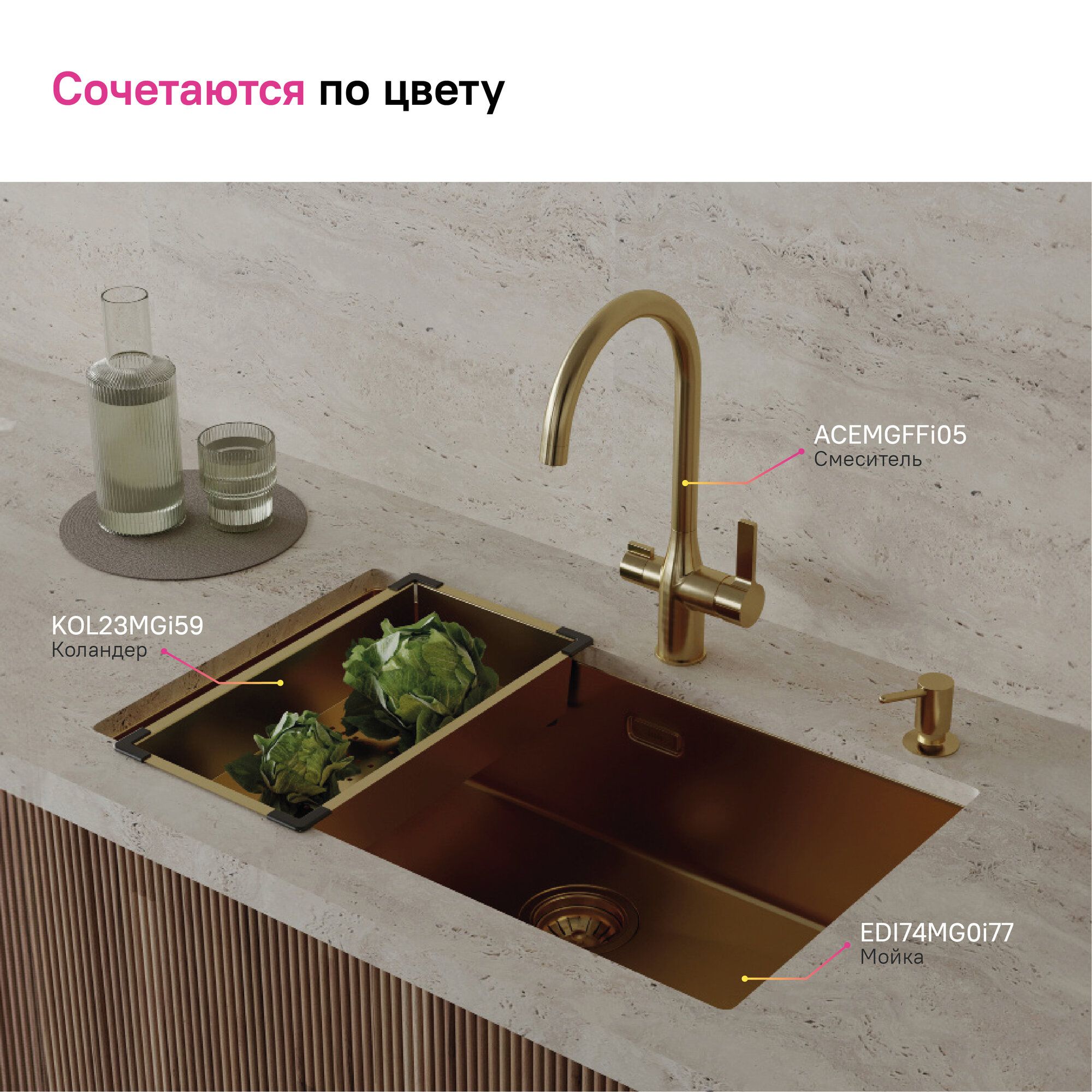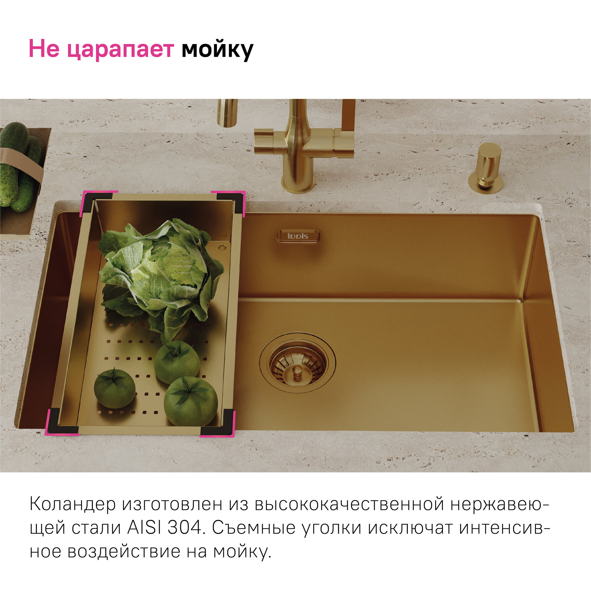 Коландер IDDIS Kitchen Line KOL23MGi59 из нержавеющей стали матовое золото 426*231: сравнение цен, характеристики, фото, актуальное наличие и цены.