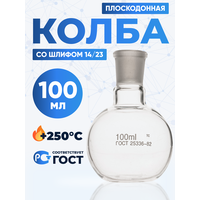 Колба 25 мл плоскодонная, термостойкая П-1-25-19/26 с цилиндрической горловиной на 19 мм без шлифа предназначена для фильтрования, выпаривания, перегонки, разгонки, дистилляции и синтеза в лабораторных условиях.