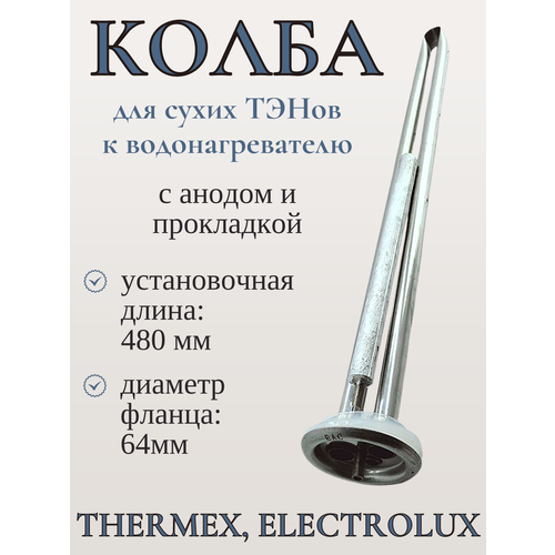 Купить Колба для сухих ТЭНов к водонагревателям Electrolux, Thermex 480 мм/ RF64 тип RES, комплект с анодом и прокладкой с доставкой по всей России. Колба для сухих ТЭНов к водонагревателям Electrolux, Thermex 480 мм/ RF64 тип RES, комплект с анодом и прокладкой: сравнение цен, характеристики, фото, актуальное наличие и цены.