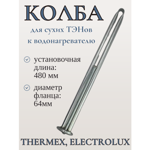 Колба для сухих ТЭНов к водонагревателям Electrolux, Thermex 480 мм/ RF64 тип RES, комплект с анодом и прокладкой