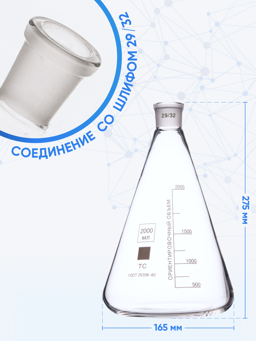 Колба коническая 2000 мл с пробкой КН-1-2000-29/32 термостойкое боросиликатное стекло, Лаборио: сравнение цен, характеристики, фото, актуальное наличие и цены.