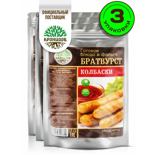 Купить Колбаски Братвурст Готовое блюдо в реторт-пакете ТМ Кронидов. Консерва Набор 3 шт. по 250 г с доставкой по всей России. Колбаски Братвурст Готовое блюдо в реторт-пакете ТМ Кронидов. Консерва Набор 3 шт. по 250 г: сравнение цен, характеристики, фото, актуальное наличие и цены.