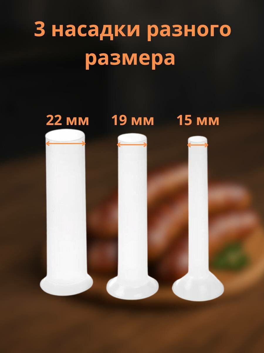 Купить Колбасный шприц горизонтальный, 3 насадки для сосисок, купат, домашней колбасы с доставкой по всей России.